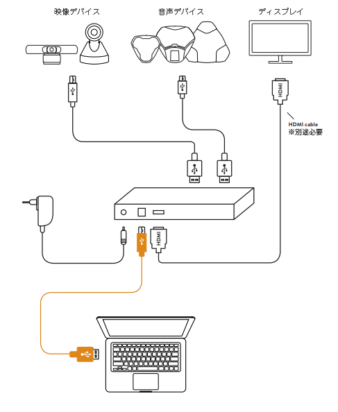 ケーブル1本でオンライン会議用デバイスとPCを接続するためのUSBハブ